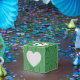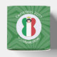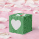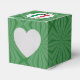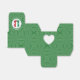 Heart cut out favour box has an angel wearing the flag of Italy for holiday party decorating or Christmas decor. The Italian Flag Christmas angel is found inside a white, fractal circle of squiggly squares on the top of the box. The background is green fractal squiggly squares. Add your own text or personalise with a name and the year.