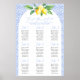 A modern and elegant table seating chart in Italian Blue Positano themet. Perfect for table seating charts of up to 9 tables.
