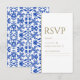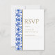 Inspired by traditional Italian patterns, this blue and white design was originally hand-drawn and is therefore exclusive to our store. This allows you to effectively brand your wedding in a stylish and classy manner, drawing from the traditional Mediterranean aesthetic. Whether your wedding is in Italy, Greece, surrounding locations, or you simply want to infuse this essence into your celebration, our Sicilian-style, Italian Blue RSVP cards tailored for just that. They are fully customisable, allowing you to change the wording to suit your preferences. To do this, simply click on 'Personalise this template.' If you're searching for matching wedding décor within this theme, explore our full collection – an easy and enjoyable way to prepare all the lovely details for your special day.
