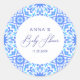 Italian Blue Tile Baby Shower Script Classic Round Sticker