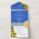 Indulge in the rustic charm and timeless beauty of Italy with our Mediterranean-inspired lemon yellow and blue wedding invitation. Adorned with a mesmerising Sicilian tile pattern and delicate watercolor botanicals, this boho masterpiece captures the essence of romance and sophistication. Featuring a cherished photo of the couple, essential wedding details, website link, and effortless RSVP option, it sets the stage for an unforgettable celebration. Let this invitation be the first glimpse into your enchanting Italian-inspired wedding, where love and elegance intertwine amidst the allure of the Mediterranean.