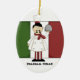This is a Italian Chef with the Italian Flag on the front. On the back, Chef's hat also with the Italian Flag. You can customised the text with your own saying or keep it the same. This ornament is great for a kitchen decor. So many people collect chef decor and would look great added to their collection.