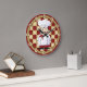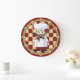 This old world clock has a chubby Italian chef wearing a red scarf, white chef's hat, red pants against a pizza coloured chequered background and he's ready to cook and ready to decorate your kitchen.