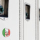 A winking cook in front of a circle containing the flag of Italy.