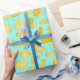 Italian Chef Pasta Shapes Food Pattern Blue Wrapping Paper