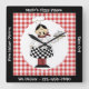 A nice addition to your home or restaurant. This clock features Italian chef holding steaming pizza. Red chequerboard and black border. Customise text as desired or remove completely.