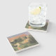 The coasters are gorgeous, a quality feel and heavy weight. They look like a precious archeological find. A rustic stone juxtaposed with a modern floral black and white print. I like the way the print goes slightly imperfect on the cut stone edges giving them a kind-of natural beauty.