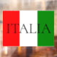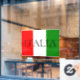 This window cling sign features an image of the Italian flag with the word ITALIA printed in large letters across the centre in a sophisticated black font. Proudly display the flag of Italy and it's vibrant and bold red and green colours. Your can personalise the sign and add your name, a phrase, or other custom text.