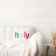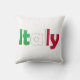 Accent your home with the Italian Flag! This patriotic, 100% cotton throw pillow prominently features the word "Italy" written in the colours of the flag of Italy on the front and back.