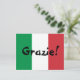 Thank you, or grazie, in Italian against the colours of Italy's flag.