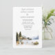 Perfect design for your wedding invitation : watercolor painting captures the timeless elegance of an Italian lakeside promenade, likely inspired by Lake Como. A stone walkway shaded by a vine-covered pergola extends along the waterfront, flanked by potted flowers and cypress trees. The serene blue lake mirrors the surrounding misty mountains and rolling hills. Across the water, a historic villa with terracotta rooftops and arched facades stands prominently, with a bell tower rising gracefully in the centre. The entire scene is bathed in soft, natural light, evoking peace, beauty, and an old-world charm.