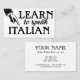 Cool vintage Learn To Speak Italian business cards in black and white but you can change the background to any colour you like! Italian language Instruction business cards.