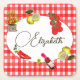Italian Lemon Mediterranean Red White Pattern Square Paper Coaster