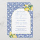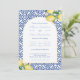 Italian Lemons Arch Shape Blue White Tiles Wedding Invitation