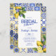 Italian Mosaic Blue Tile Lemons Chic Bridal Shower Invitation