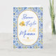 A personalised folded Mother's Day card for Italian mamma featuring Amalfi coast inspired Mediterranean tile pattern in bright blue, white, and yellow with elegant script calligraphy. Say I love you to your mother-in-law with this stylish and unique card.