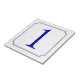 Patterned after a street sign seen in Italy. Narrow blue border with reverse circle filets at the corners. Ceramic number tiles. You customise with the numbers or letters you need for your ceramic tile or mosaic sign.