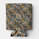 This repeating, ornate floral pattern features stylised flowers in warm gold, orange, and muted teal against a dark navy background, interlinked by scrolling leaves and flourishes in a symmetrical, continuous design. Carefully shaded petals give each bloom a dimensional, embossed feel, while acanthus-like leaves evoke the decorative elements of Renaissance and baroque art. The result is a dramatic yet harmonious layout rich in contrast, offering a timeless, old-world elegance perfect for anyone seeking a vintage-inspired aesthetic.