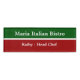 Italian restaurant employee name tags in the colours of the italian flag with space for the name of your establishment and space for a staff member such as sa chef, manager, or reception.