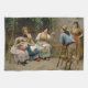 This design features a painting by the Italian artist Eugene de Blaas (1843–1931). It depicts a group of women working on some sewing in the garden; they are chatting to a boy who is leaning on the back of a wooden chair. There is some fruit in a wicker bowl on the floor too, perhaps apples. The women look happy and animated as the boy entertains them with his chat. There is also another woman standing beside a nearby brick wall with her arms akimbo. In the background can be seen a pergola with ivy growing over it. The ground is dusty, but the women are wearing elegant dresses, and the boy is wearing a blue shirt and traditional hat, with a bandanna or scarf wrapped around his neck. The original art was painted in 1905.