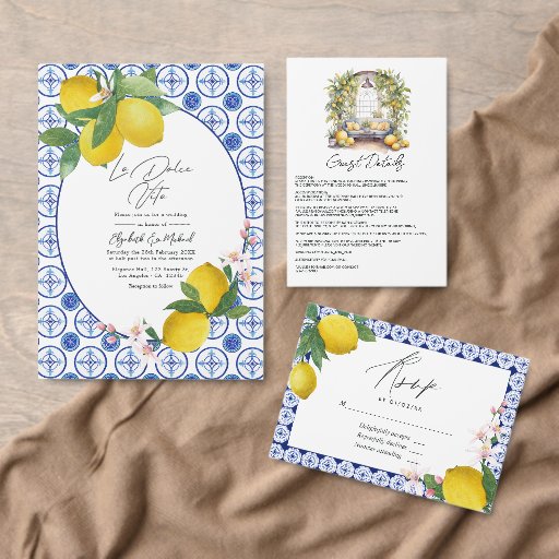 Celebrate in true Mediterranean style with this Italian-inspired bridal shower invitation. Featuring vibrant lemon illustrations, classic Sicilian tile patterns, and elegant typography, this design captures the essence of 'La Dolce Vita.' Perfect for a bridal shower with an Italian or Mediterranean theme, this invitation is as charming as the occasion itself.