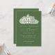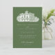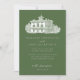 Impress your guests with this elegant formal wedding invitation by JessicaAmber. This classic card features a detailed vintage illustration of an Italian villa, which you can replace with an image of the destination where you'll be married (transparent background preferred). Elegant lettering displays the bride and groom names, and details of the wedding, including the location, date and time. The background is a chic olive green. This invitation is preferred for when the couple are hosting the event themselves.
