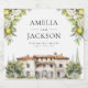 This design features a gorgeous Italian villa adorned with lemons, olives and white floral.