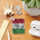 Keychain with the flag of Italy in wavy fabric style design. This design features the Italian flag colours and design with a beautiful waving material textured effect. This flag design is a great way to show you are proud to be from Italy.