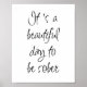 Transform your surroundings with this elegant poster, with a playful script typography in classic black and white. Its message, "It's a beautiful day to be sober," resonates deeply with those on the journey of recovery. Let this quote serve as a beacon of motivation, reminding you of the strength within.