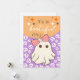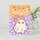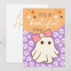 Cute Halloween ghost girl with pink bow holiday greeting card.