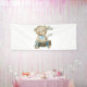 This banner feature the words "It's A Boy" in a unique print font with brown letters blue outline with a teddy bear sucking his thumb playing with blocks that spell the word "Boy" in this baby boy theme and style. This banner has single side printing outdoor safe measures 4"x10" made with an elegant matte finish and is both fade and tear resistant for Indoors or outdoor use great for advertise anything, from birthdays to graduation, weddings to anniversaries. Hemmed and thermally welded edges for neat finish outdoor banners can be bought with metal grommets.