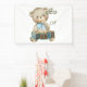 This banner feature the words "It's A Boy" in a unique print font with brown letters blue outline with a teddy bear sucking his thumb playing with blocks that spell the word "Boy" in this baby boy theme and style. This banner has single side printing outdoor safe measures 4"x6" made with an elegant matte finish and is both fade and tear resistant for Indoors or outdoor use great for advertise anything, from birthdays to graduation, weddings to anniversaries. Hemmed and thermally welded edges for neat finish outdoor banners can be bought with metal grommets.