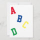 Design front features a customisable heading, "It's a Boy!" in bright, blue letters against a white background. Your text is featured in bright blue letters against a white back. Background image is of the letters, "ABC" in primary colours. A blue border is displayed around design. All text is customisable. Back design features "ABCD" in bright colours as background. Designed to coordinate with the "ABC Baby Shower Collection."