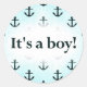 It's a Boy! Anchor Pattern Baby Blue Classic Round Sticker