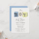 A unique design for a baby boy, featuring an illustration of wooden baby blocks with the word boy in modern subtle colours. Personalise your template front and back.