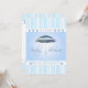An Adorable baby shower Invitation for the expectant mum to be. This is specifically for a boy and it features a cute blue umrella on the front with blue flowers and stripe designs. Please see our store for available matching accessories.