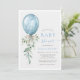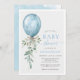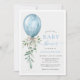 It's A Boy Blue Balloon Bow Greenery Baby Shower Invitation