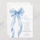 This pretty baby shower invitation features an elegant blue bow and stylish typography. With your registry QR code and event details on the reverse. Designed by Thisisnotme©