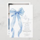 This pretty baby shower invitation features an elegant blue bow and stylish script typography. The reverse features your special photo and a registry QR code. Designed by Thisisnotme©