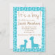 A striking blue giraffe pattern as a decorative border for your baby boy announcement or baby show invite with the message "It's a boy!". A cute silhouette of a baby giraffe and its parent as part of the design. Personalise easily with your party details.