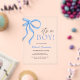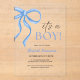 Elegant and Modern Baby Boy Acrylic Shower Invitation in Blue and Gray, adorned with a Stylish Blue Ribbon and personalized Typography. Perfect for a Trendy and Memorable Celebration!