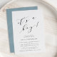 Simple and elegant baby shower invitation features "it's a boy" in chic modern calligraphy lettering. Personalise with your baby shower details beneath. Baby shower invitations reverse to solid light smoky blue. Customise the paper type or shape to make this elegant design your own.