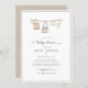 Welcome your little boy in style with this beautifully crafted boho minimalist baby shower invitation! The design features a soft watercolor illustration of tiny baby clothes gently swaying on a clothesline, painted in warm, earthy pastel tones of sage, sand, dusty blue, and cream. Elegant handwritten script adds a graceful, modern touch, blending effortlessly with the cozy, organic feel of the artwork.