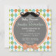 Cute, funny Boy baby shower design on colourful argyle pattern; orange, green, teal, and yellow pattern. Vintage feel design with top hat, funny moustache, and retro orange bowtie. Its a Boy baby shower or baby sprinkle design that you can personalise. Visit our store, Favours and Decor, for many more great party gifts and decorations for goody bag stuffers and decor.