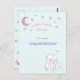 NewParkLane - Postcard for a new baby boy, featuring two cute rabbits, sitting and staring at the stars and the moon, and a sweet nursery rhyme quote: 'Twinkle, twinkle little star’, against a baby blue background.