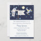 Having an out of this world baby shower for a baby boy? Experience an outer space, adventure countdown and splash down baby shower! Dark blue outer space background with blue midnight stars, a little spaceman holding "It's A Boy!" flag, full yellow moon, and spaceship! Templates created for you.
