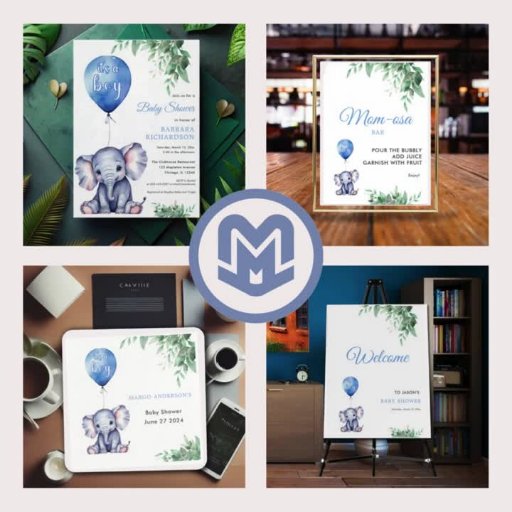 It's a Boy Elephant Balloon Blue Baby ShowerDesigned by Max Marshall