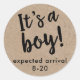 Hand lettered "It's a Boy" in black against a kraft paper style background.