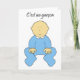 Cute cartoon baby in a blue all in one outfit, with the words 'C'est un garcon' written above the baby.