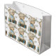 This gift bag feature the words "It's A Boy" in a unique print font with brown letters blue outline with a teddy bear sucking his thumb playing with blocks that spell the word "Boy" in this baby boy theme and style. All gift bags are made with premium quality paper for extra durability and your choice of matte or glossy finish available in 3 additional sizes great for baby showers, weddings or anniversaries.